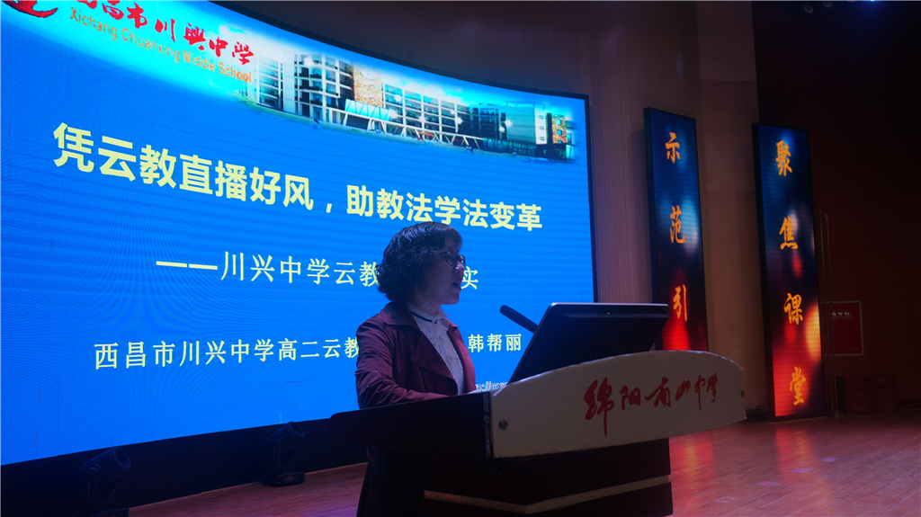 董洪丹副院长做总结性工作 为方便与会嘉宾深入了解直播教学运转形式,会上播放了南山中学鲁洁玉老师教学直播视频。四川省教科院高中所所长吴中林做了点评。绵阳南山中学、西昌川兴中学、眉山青神中学先后做课题优秀中期成果展示。